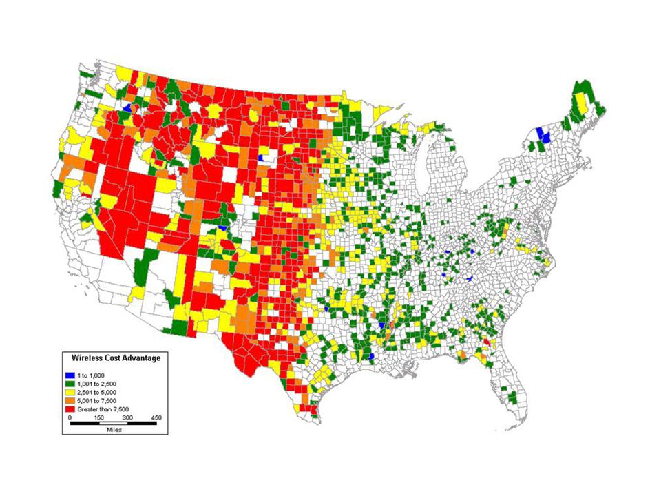 La diferencia de costes entre las infraestructuras fija y móvil para el despliegue rural ya tiene cifras: un reciente estudio de Brattle Group en Estados Unidos asegura que se pueden ahorrar de 1.000 a 7.500 dólares por hogar conectado usando la tecnología inalámbrica. Este ahorro aún podría ser mayor teniendo en cuenta que el estudio de Brattle Group ha puesto un precio alto al espectro y que las zonas rurales tienden a tener las viviendas distribuidas de manera poco homogénea, hecho que encarecería más el despliegue de banda ancha fija.