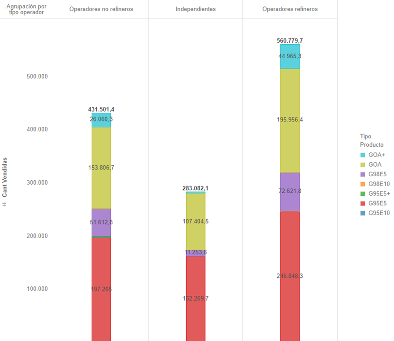 Al contrario de lo que sucede en Península y Baleares, el combustible más vendido es la gasolina 95. La estructura de ventas en 2024 fue de un 58 % gasolina y un 42 % gasóleo de automoción. Quizás se debe a que en Canarias se venden más coches de gasolina y que la fiscalidad especial de las islas hace que sea más asequible que en otras regiones de España.