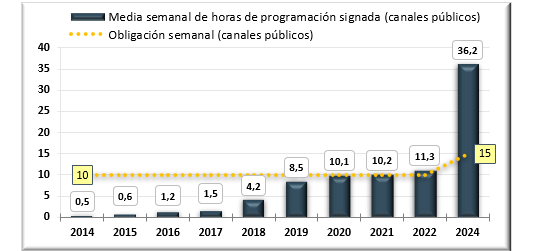La audiodescripción —pensada para personas con discapacidad visual— también ha ganado terreno. Los canales públicos superan ampliamente los mínimos legales y los privados han incrementado de forma progresiva las horas semanales disponibles.