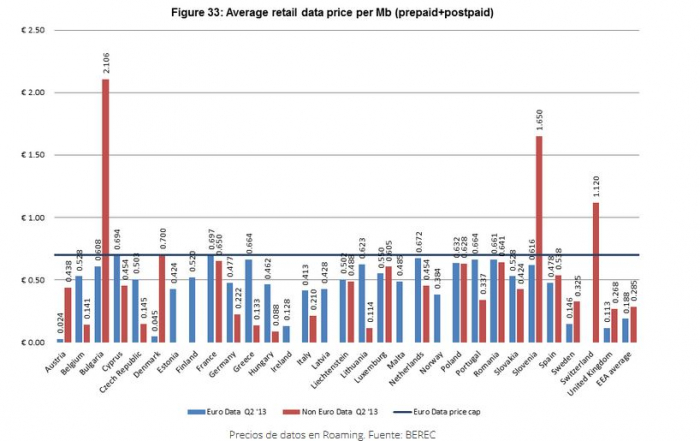 Comparativa europea de los precios del roaming